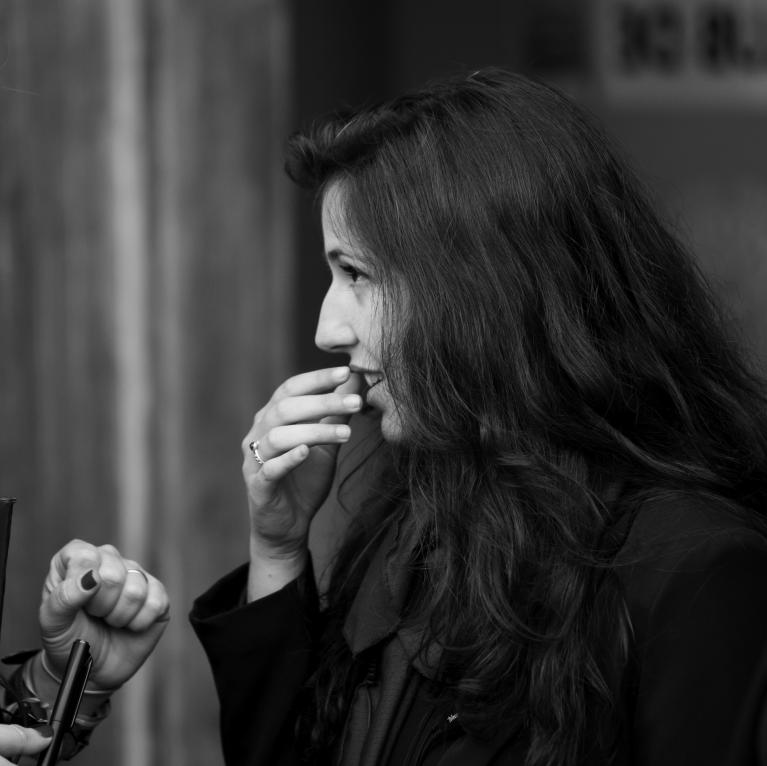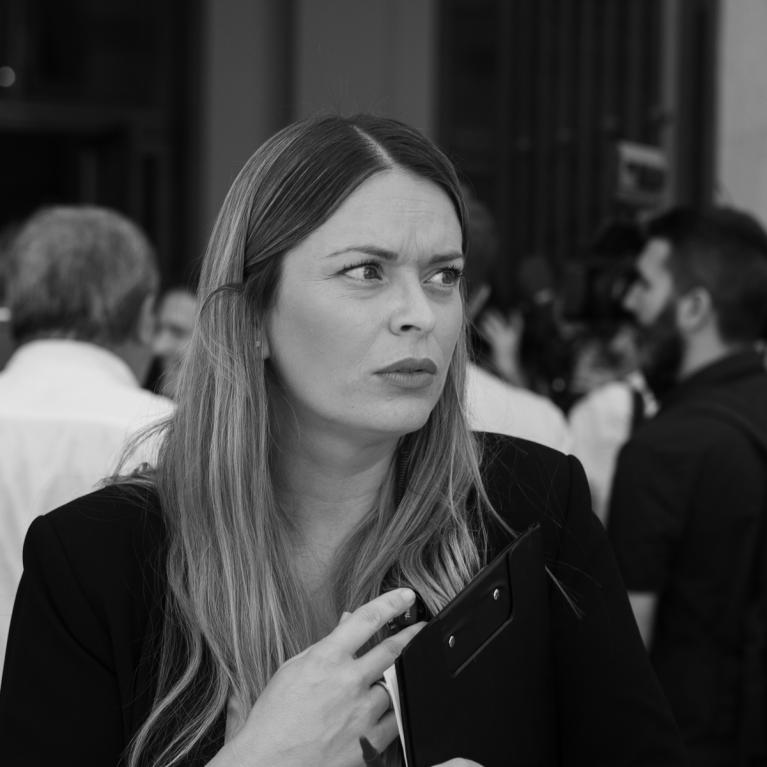 Ella es de aire libre. Es feliz en los montajes y en los eventos. Se desvive con tal de hacerle la vida fácil al resto. La hemos visto nacer y crecer (profesionalmente) y nos encanta que haya heredado de Doña Prudencia ese sentido tan brutal del "por si acaso". Morimos de envidia cuando después de 15 horas trabajando en un evento le quedan fuerzas para salir con sus amigas. Su único defecto: nos hace crepes sólo una vez al año.